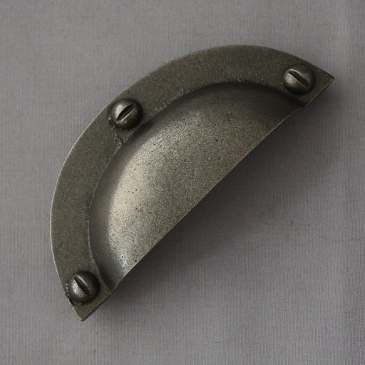 Out of stockIndustrial style cup pull handle with a Black iron antiqued finish, ideal for cabinets, drawer units, furniture and kitchens. This model has lugs a...