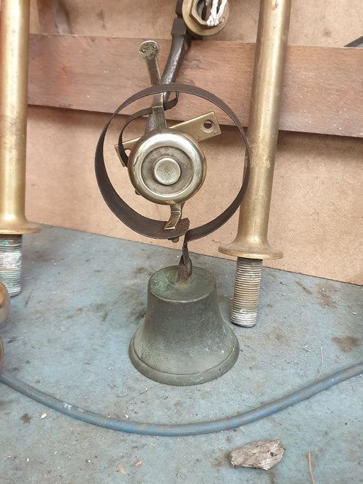 2 in stockA superb reproduction nickel Winchester bell pull & bell, a complete mechanical front door bell. A really nice complementary set made up with t...