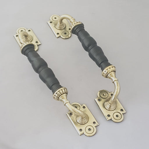 Out of stockA classic mid sized pair of mid to late Victorian antique pull handles with brass mounts and turned solid ebony handles. Lovely detailing with offs...