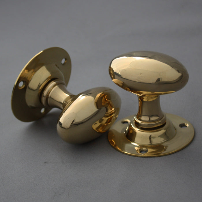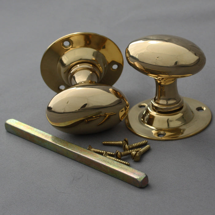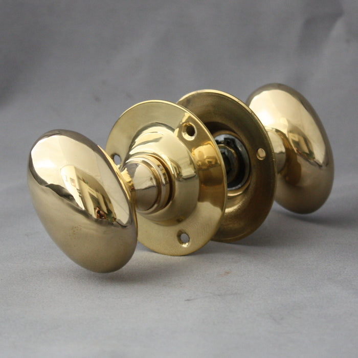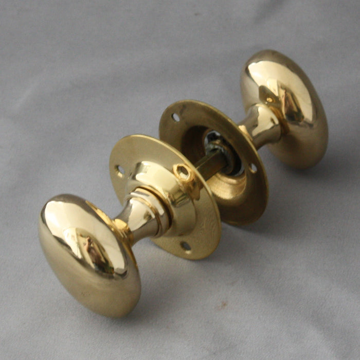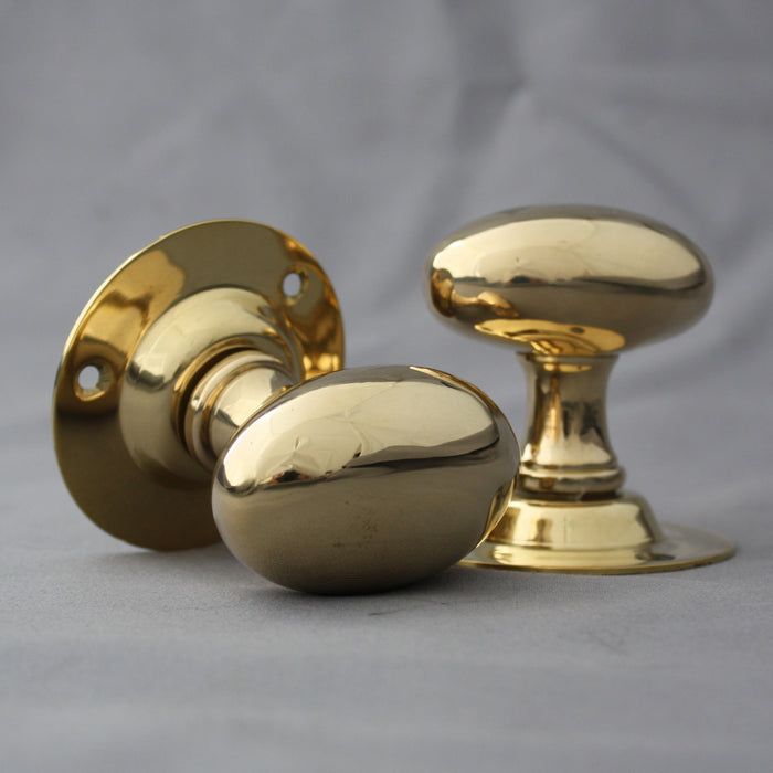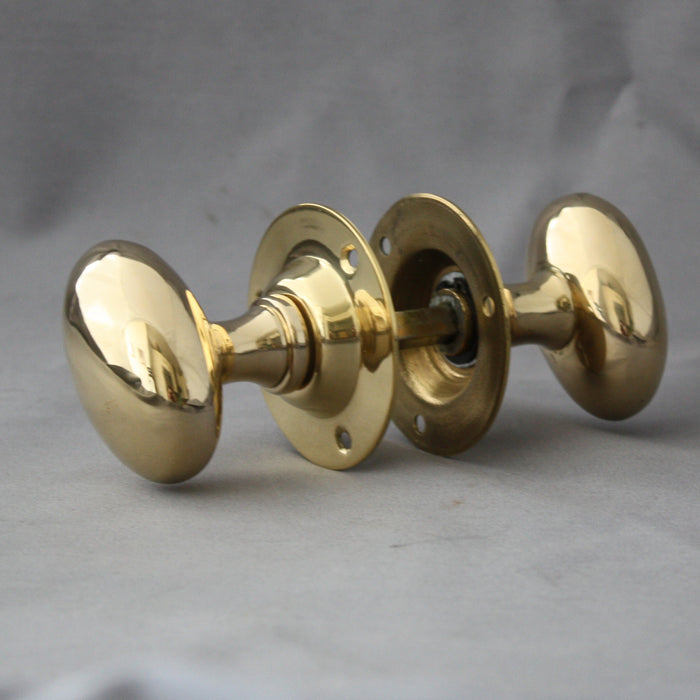 A fantastic quality pair of Edwardian brass oval door handles. These are a good quality rich coloured solid brass and reproduced from an original pair of period handles that probably dated to around 1900. These are unlacquered so they will tarnish and age but easily polished with a Brasso type product. We also stock a full range of door & cupboard furniture from the same quality manufacturer; please contact us for assistance on matching sets.