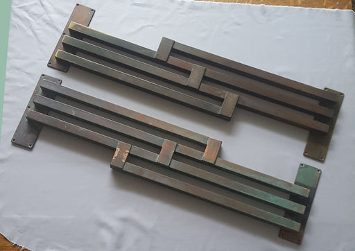 Out of stockA lovely pair of large 17'' antique Art Deco pull door handles from the 1920/30s. Hollow brass handles and cast brass fixing plates, the pair have ...