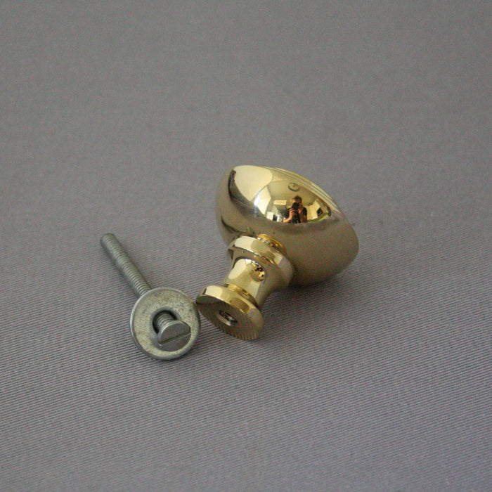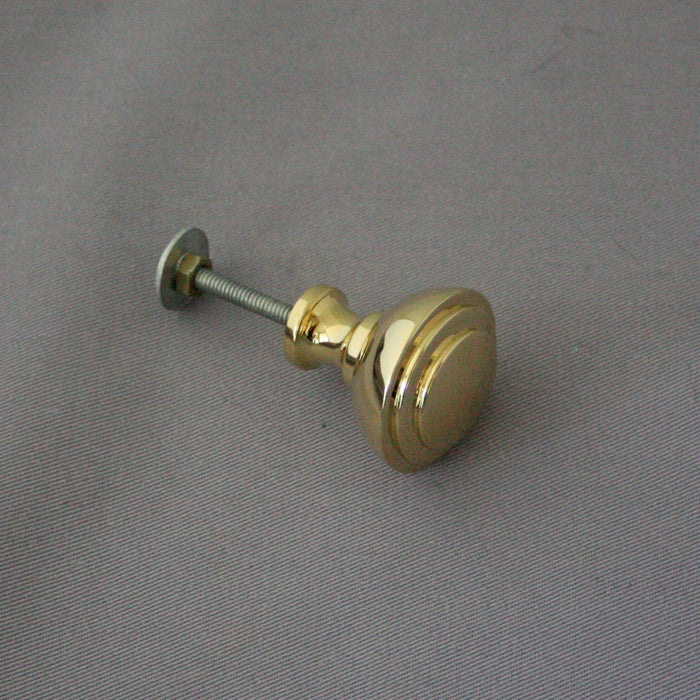 Finish: Polished brass Size: 32mm diameter x 32mm (1.25in x 1.25in) Fits doors & drawers thickness: Up to 30mm Weight: 100g Supplied with:Bolt & washer Incl VAT