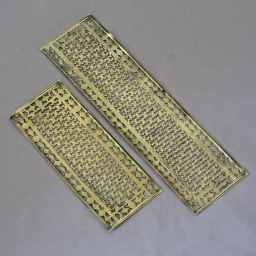 Out of stockPairs of quite thin pressed brass pierced Georgian antique finger plates from the early part of the 1800s. Normally they go one side of the door, o...