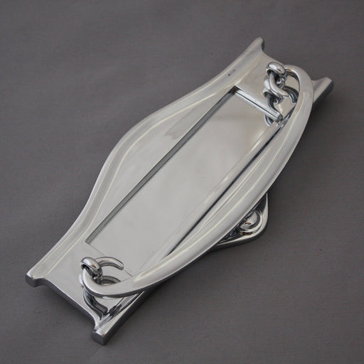 A really nice quality sand cast reproduction Art Nouveau chrome plated brass letterbox with a fluted clapper. This exact style of letterbox was ver...