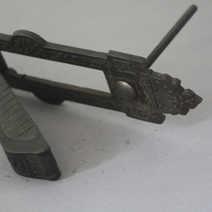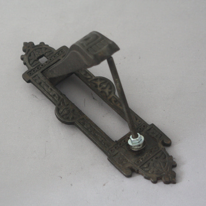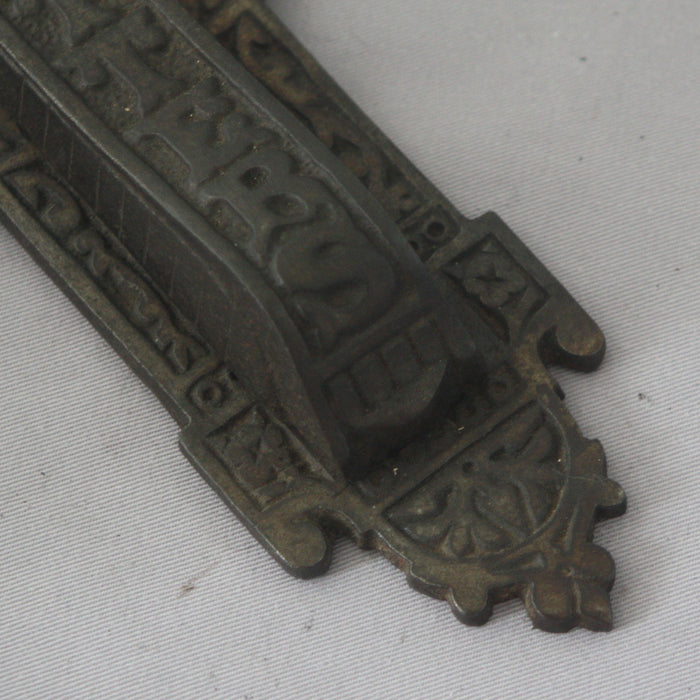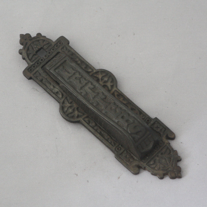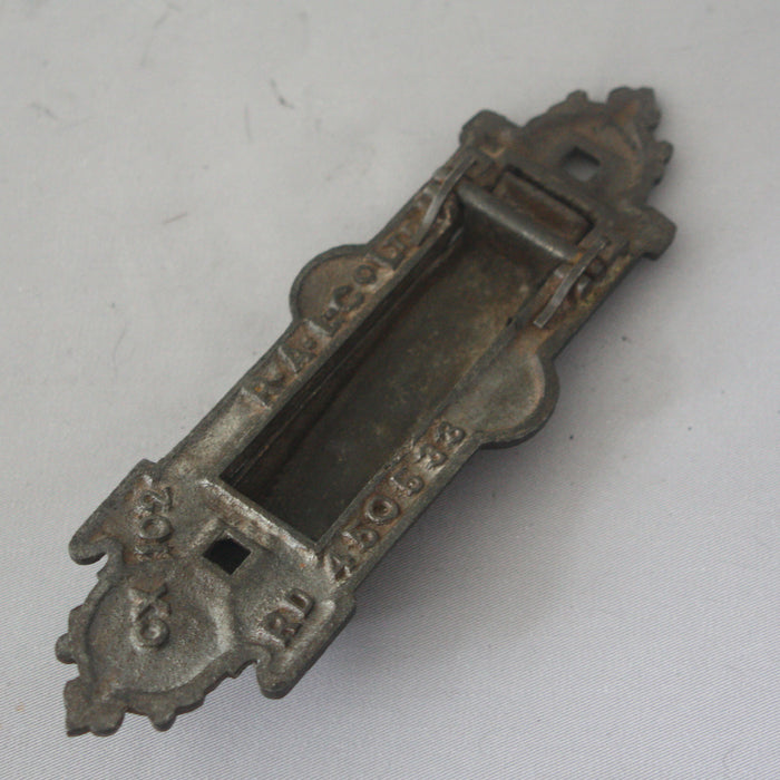 An unusual original cast iron letterbox & knocker, unsprung so it just works on gravity. Various stamps on the back dating the design to the early 1900s, this example isn't much later than that.