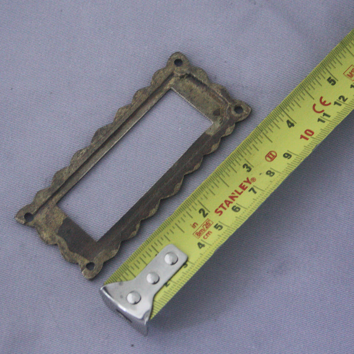 Matching cast brass late 1800s antique label holder. Could be from doors or cabinets, they're a fairly good size for most uses. Each holder has been cleaned and polished, they'll tarnish pretty quickly if not kept shiny.
