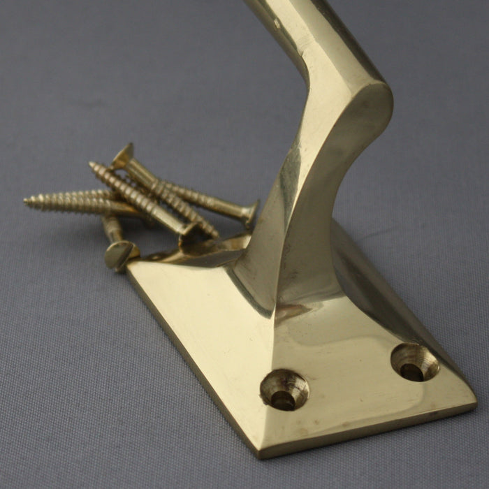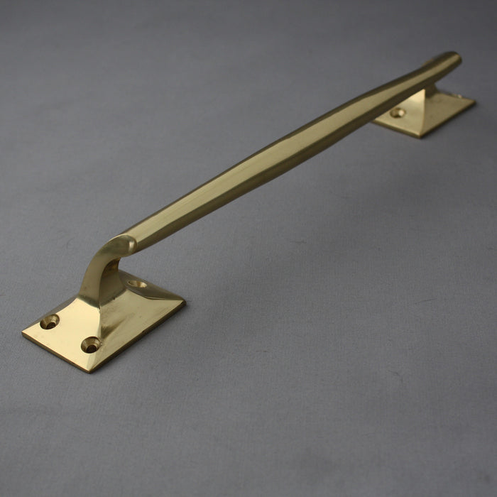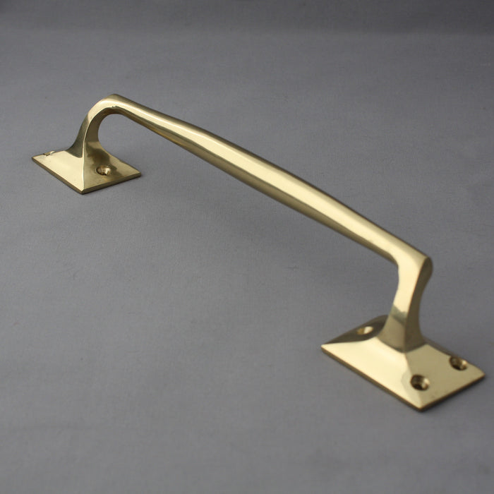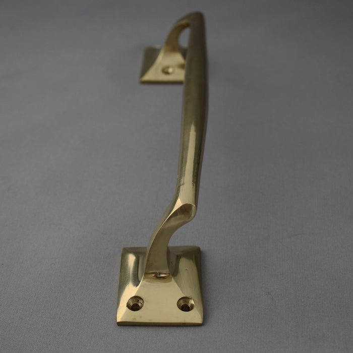 A good quality early 1900's reproduction brass door pull handle with a cranked shape, sold singly but work equally well in pairs. We've often reclaimed this exact style from both commercial and domestic premises.