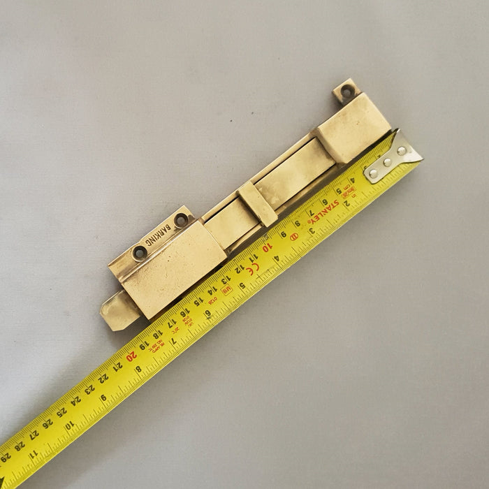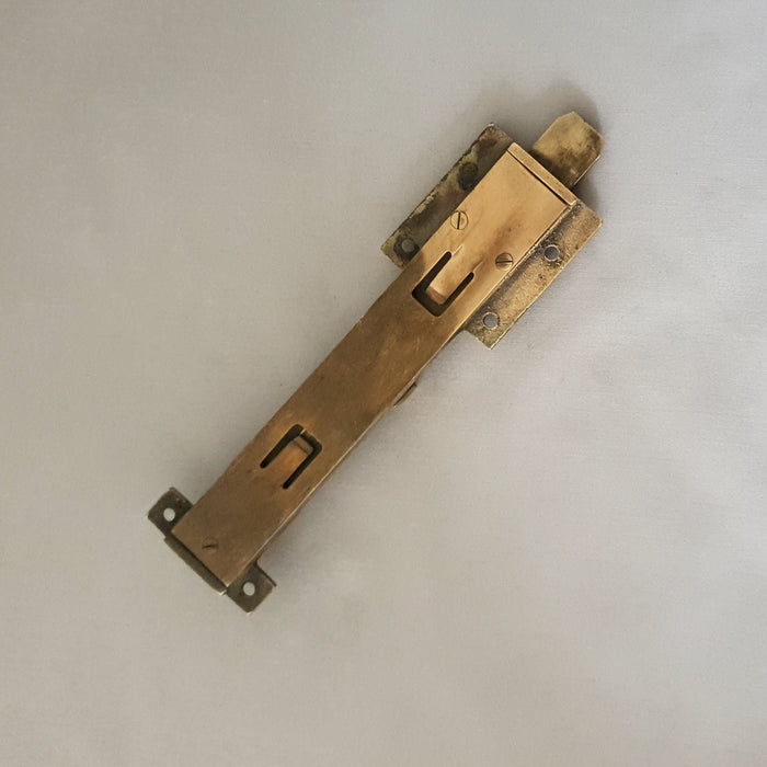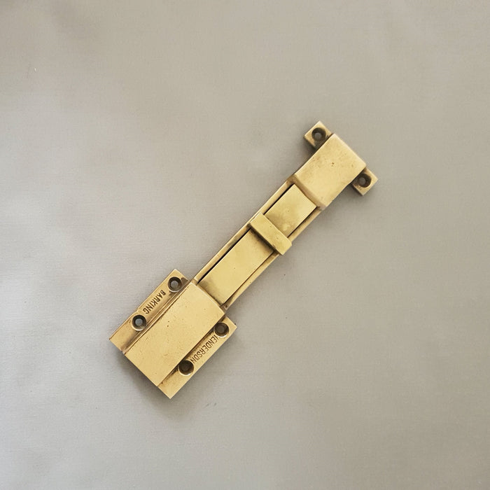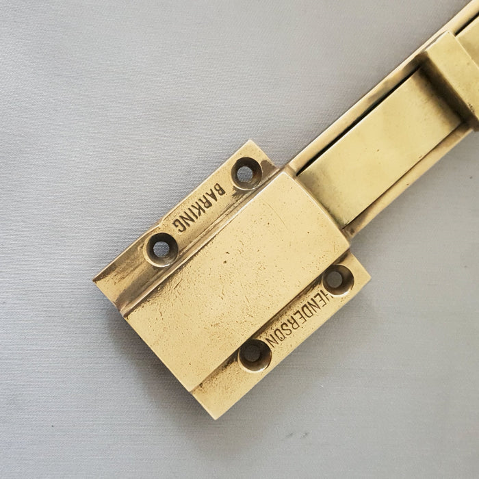 Lovely quality solid brass sprung recessed antique door bolts stamped Henderson Barking on the flange. Probably early to mid 1900s, in a mid/slightly darker shade of brass, each one has just had a light polish.