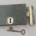 A great example of a large right handed antique Victorian wrought iron rim lock with brass mounts. All refurbished and lightly refinished, original key and a later keep.