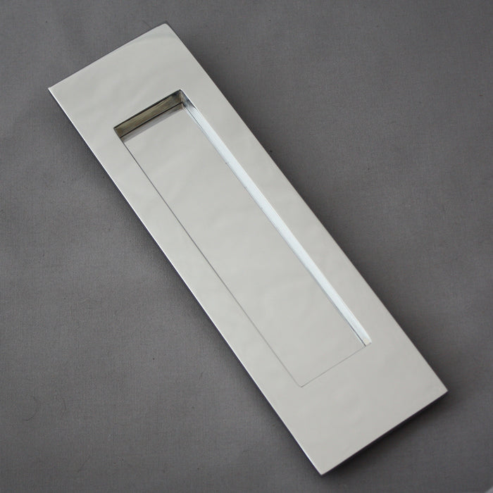 A good quality traditionally styled chrome vertical letter plate, ideal for the centre of front doors and for mail slots in entryways, porches and side walls.