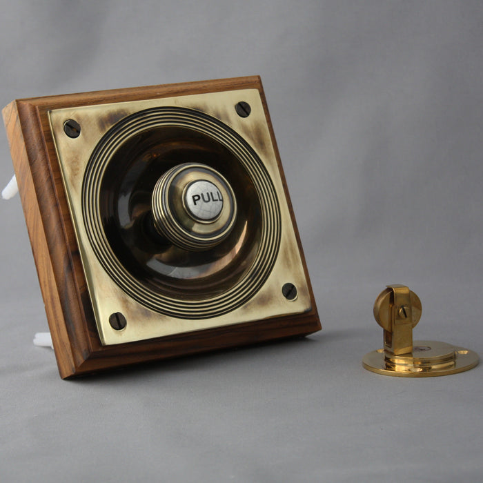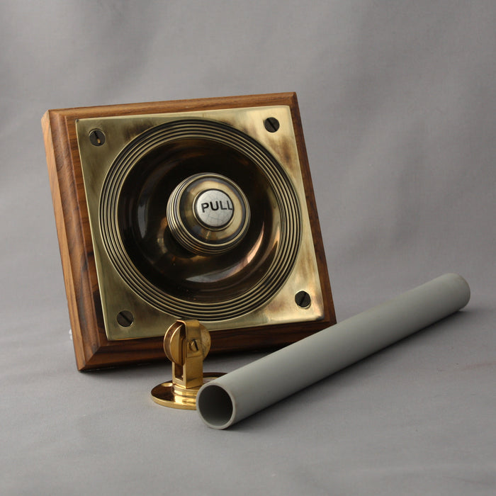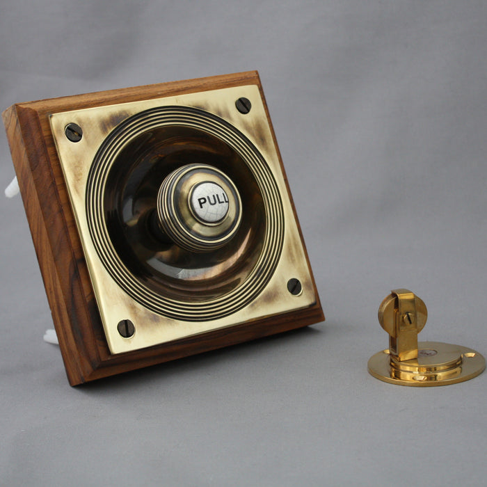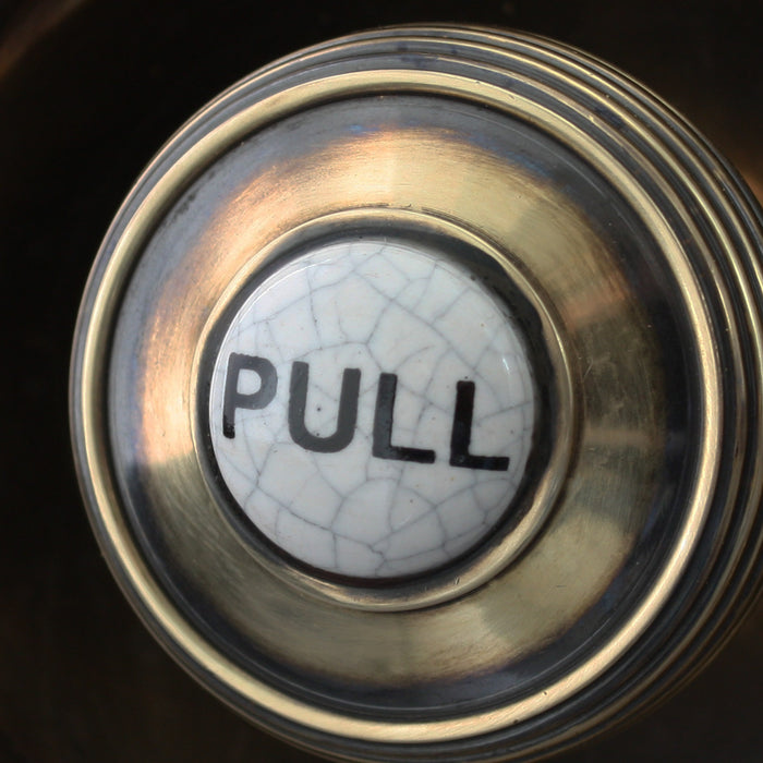 A fantastic quality brass reproduction Victorian front door bell pull. The un lacquered outer solid brass casing and centre are manufactured using the lost wax method so each one is slightly different. The brass will quickly tarnish outside but easily polished back with a Brasso type product. The porcelain centered 'PULL' has an antique crackle finish and again each one is slightly different.